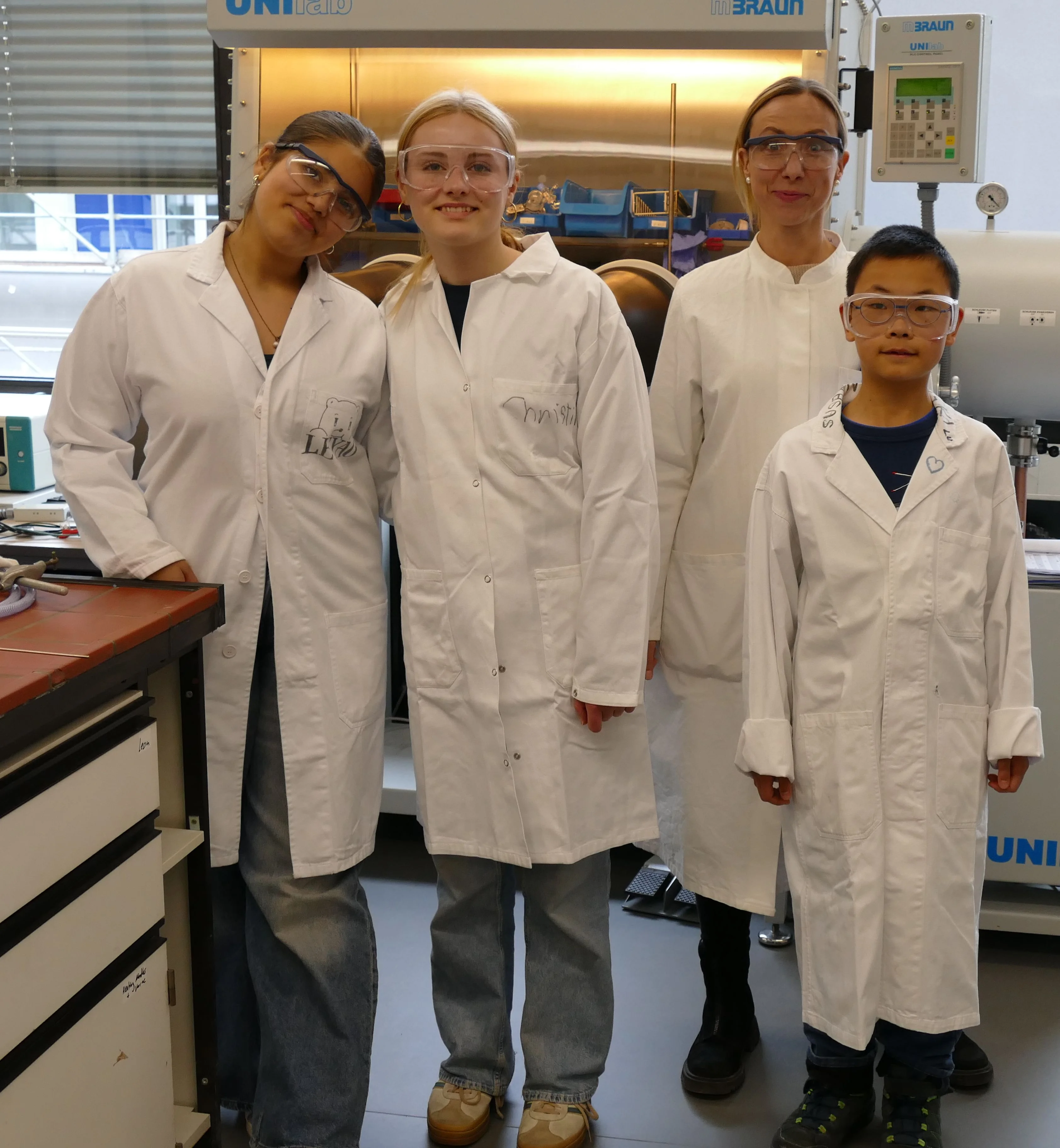 Zoe (1. v.l.), Maya (2. v.l.) von der Liebfrauenschule Köln, Klasse 8a und Alexander (4. v.l.) vom Friedrich-Ebert Gymnasium, 5. Klasse